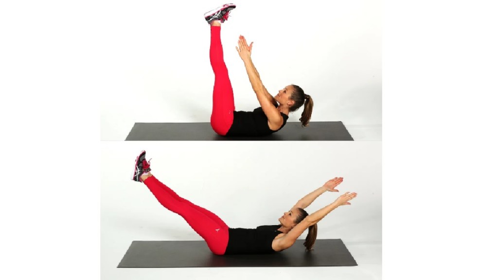 복근운동은 주로 브이 크런치 (V Crunch)라는 것을 합니다. 아니면 레그 레이즈 (Leg Raise)를 하는데요. V Crunch는 상복부와 하복부를 함께 운동시켜주는 운동이에요. 잘못하면 허리에 무리가 많이 갈 수 있으니까 너무 허리를 많이 들지 않고 상체만 드시고 다리와 수평을 만들어서 V자를 만들면 됩니다. 동작은 아래와 같이 팔과 다리를 완전히 내리지 않은 상태에서 폈다가 다리와 팔을 수평이 되게 다리를 올리고 상체를 드는 것입니다. 아래 그림은 너무 다리를 들었는데요. V-자가 되게 몸을 만들면 됩니다. 복근운동에 좋은 운동인 것 같습니다. 그런데 이걸 한다고 식스팩이 생기지는 않아요. 저는 제 식스팩이 어디엔가 숨어있다고 믿는 중이에요.