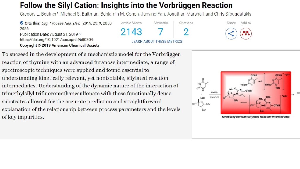 이 반응이 1970년에 Angewandte Chemie에 발표가 된 이후에 Nucleoside Chemistry는 전성기를 맞게 됩니다. Vorbruggen Reaction은 Nucleoside Process Chemistry & Manufacturing에서 널리 쓰이게 되죠.