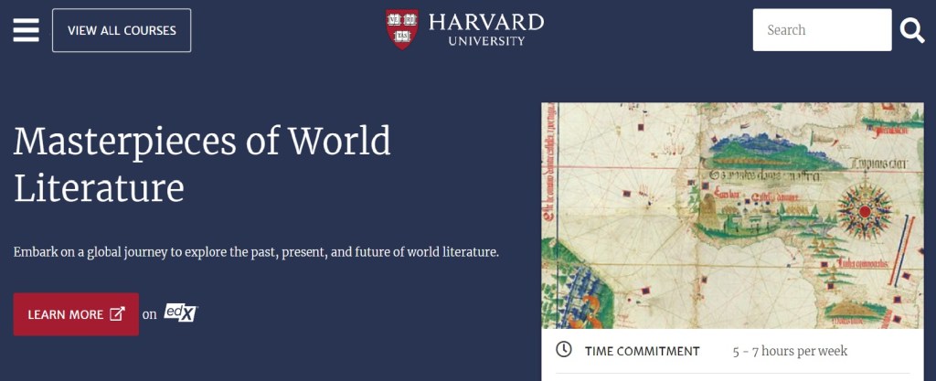 먼저 배울 과목은 Harvard University, Department of Humanities의 과목인데 “Masterpiece of World Literature”입니다.