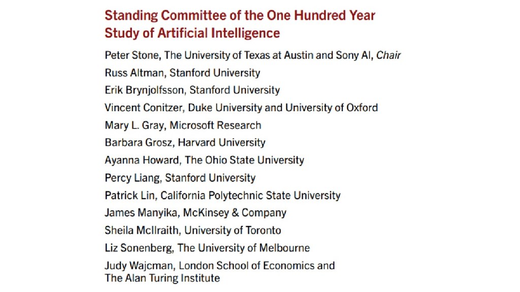 One Hundred Year Study on Artificial Intelligence (AI100)