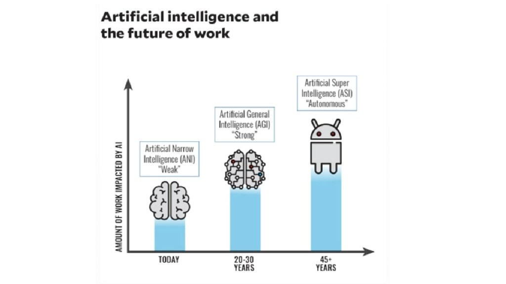 - ASI (Artificial Super Intelligence): ASI는 이제 정말 인공지능이 자체적으로 모든 것을 할 수 있는 단계를 의미하고요 아마도 지금으로부터 45년 이후에 가능해 지지 않을까 하고 생각합니다.