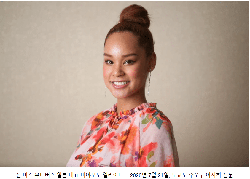 2015년 미스유니버스 일본대표로 일본인 어머니와 미국인 흑인 아버지 사이에서 태어난 미야모토 엘리야나가 당선되었었습니다. 그러니까 피부색이 다른 미인대회 당선자는 이번이 처음은 아니더군요. 아래는 미야모토 엘리야나의 모습입니다.