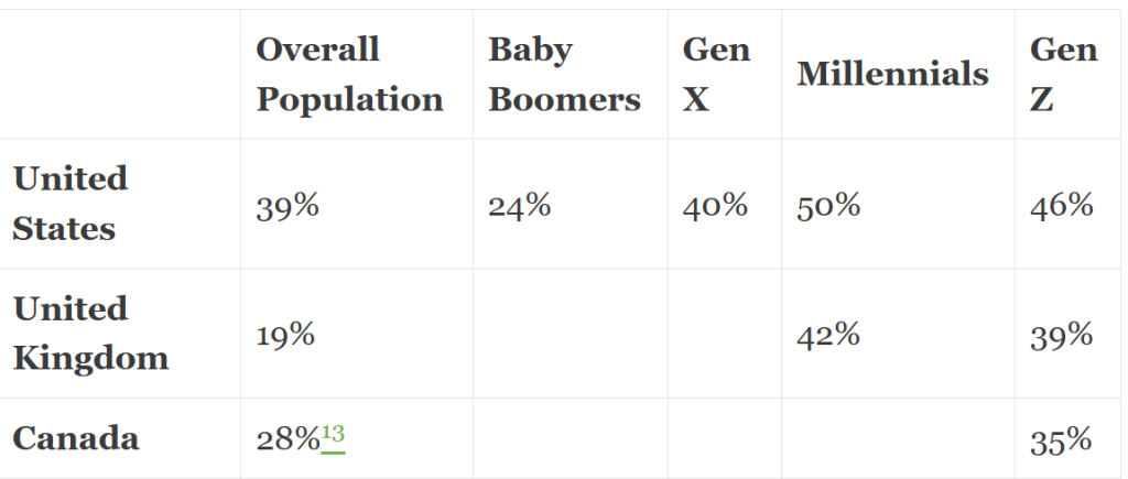 재미있는 것은 영국이나 캐나다와 달리 미국에서는 베이비붐 세대의 24%가 Side Hustle을 한다고 합니다. 이들은 이미 은퇴 연령에 도달한 세대인데도 말이죠. 그리고 젊은 세대로 갈수록 50%로 높아집니다. 그러니까 미래에는 점처 Side Hustle을 하는 사람들이 많아질 것으로 보입니다.