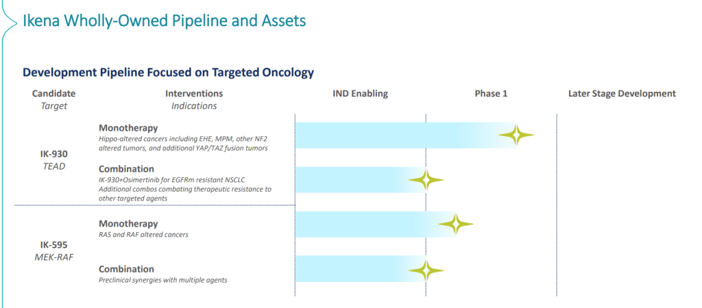 BMS의 딜이 종료되면서 올해 초에 35% 인력감축을 하게 되었고 모든 Discovery Program은 중단하고 IK-930 (TEAD)와 IK-595 (MEK-RAF) 두개의 임상에만 치중하기로 방침을 정한 상태입니다.