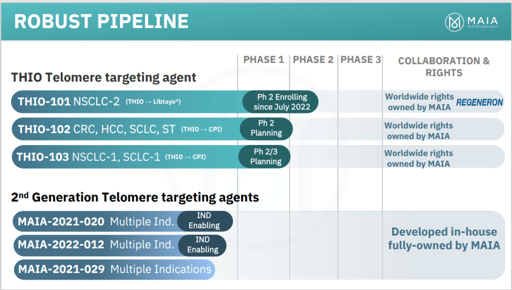 MAIA Biotechnology는 NYSE에 있는 Small-Cap Biotech 회사인데요 UT Southwestern Jerry W Shay 교수의 연구에 근거를 두고 THIO (6-thio-dG)의 Telomere-Targeting Immunomedics를 개발하고 있습니다.