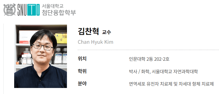 김 대표는 어린 시절부터 틀에 박힌 일보단 하고 싶은 일을 찾아 나섰다고 한다. 새로운 일에 두려움 없이 나아가는 아버지 영향이 컸다. 그는 연세대 생명공학과에서 학·석사를 마치고 당시 한화석유화학중앙연구소, LG생명과학, 차바이오텍 등을 거치면서 CAR-NK세포에 관심을 두기 시작했다. 2015년 CAR-NK세포 치료제를 시작으로 CAR-T세포 치료제를 독학하던 시기 아버지가 암으로 세상을 떠났다. 이듬해 그는 운명처럼 면역항암제만을 전문으로 하는 바이오벤처를 설립해 이전에 없던 길을 나아가고 있다.