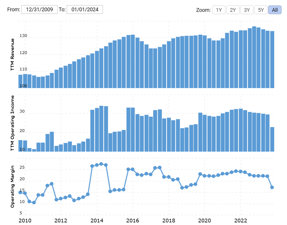 영업마진이 22%이고 ROE가 12.6%이며 배당률이 6.7%로 높은 상태입니다. 지난 19년간 배당을 꾸준히 늘려왔고 1.9%의 배당성장률을 유지하고 있습니다. 다만 Payout Ratio가 95%에 육박하여 높은 것이 배당주 투자자로서 장기투자하기에 리스크가 있어 보입니다. 장기적으로는 5G 부문의 성장이 기대되기 때문에 성장 여력은 충분하다고 생각합니다.