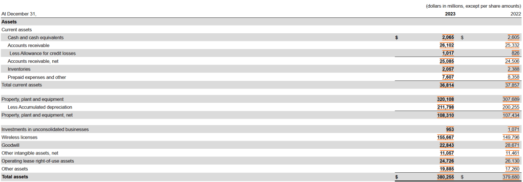 Verizon의 사업부문은 매출별로 아래와 같습니다. 소비자 부문이 2021년에 비해 늘어난 것을 알 수 있습니다.