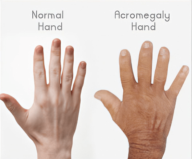 Acromegaly is a rare hormone disorder caused by a benign tumor in the pituitary gland that secretes growth hormone, causing excess secretion of IGF-1 from the liver. This can lead to bone, joint, cardiovascular, metabolic, cerebrovascular or respiratory diseases. Symptoms include abnormal growth of hands and feet, enlargement of heart, fatigue, sleep apnea, severe swelling and other complications.