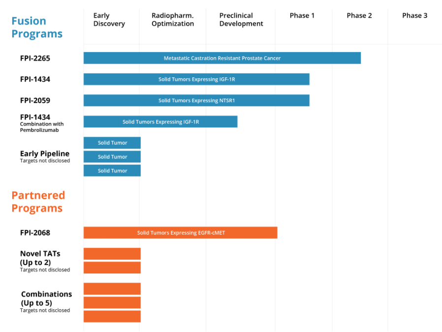 Dr. Valliant continued, “With one Phase 2 program, three ongoing Phase 1 programs, and an IND submission through our collaboration with AstraZeneca expected in the first quarter of 2023, Fusion continues to extend its leadership in targeted alpha therapy development. Following the encouraging data we reported from the cold antibody sub-study of the FPI-1434 trial in June, we continue to dose escalate and we look forward to reporting the preliminary Phase 1 data in the second quarter of this year. The FPI-1434 data will be the first in what we expect will be multiple clinical updates generated from our pipeline over the next 24 months.”