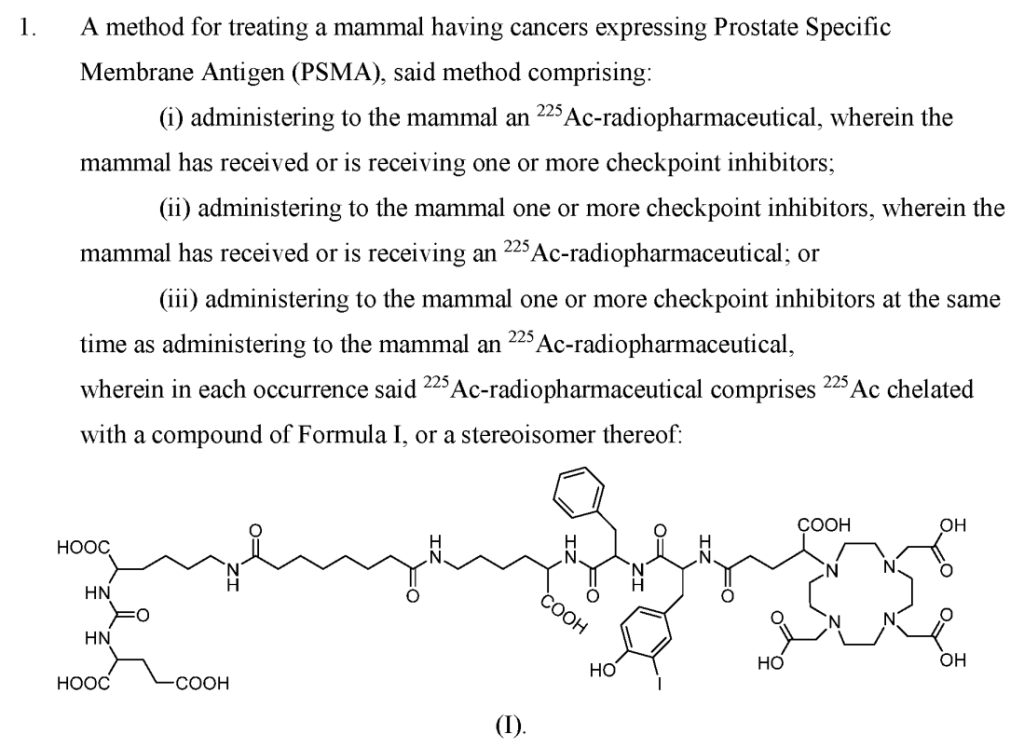 The TATCIST trial is designed to evaluate patients with metastatic castration-resistant prostate cancer (“mCRPC”) with progressive disease, including patients who are naïve to PSMA targeted radiopharmaceuticals and those who have been pre-treated with 177Lu-based PSMA radiopharmaceuticals such as PLUVICTO™. The trial is expected to evaluate approximately 100 patients with four treatment cycles per patient occurring every eight weeks. Patients are initially dosed at 100 kBq/kg with dose de-escalation possible based on biochemical response. Efficacy will be assessed using change in PSA levels and radiographic response.