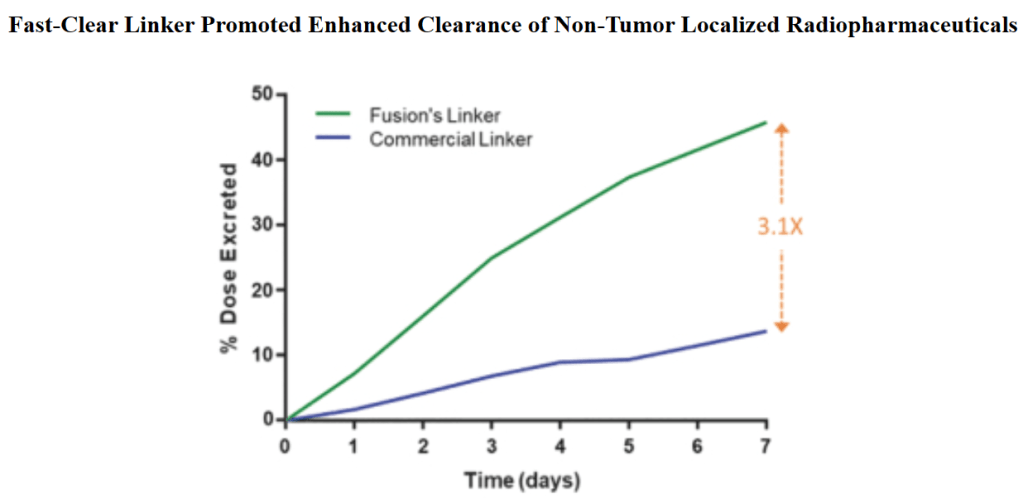 Fusion’s targeted approach combines alpha particle-emitting radiotherapeutics with molecules that deliver them to tumors. Using a molecule such as an antibody to avoid delivering radiation indiscriminately and harming healthy cells is not a new idea. But the company believes that its linker technology—which connects a molecule to a radioactive compound—can clear radiotherapeutics more quickly than commercially available linkers, thereby extending their therapeutic window.