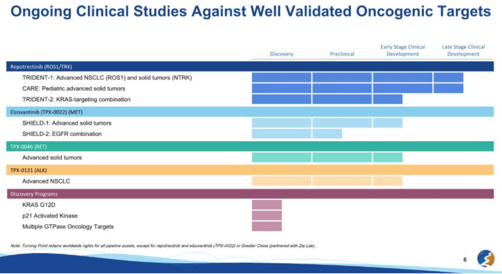 Repotrectinib (ROS1/NTRK Inhibitor)는 2023년말에 FDA 승인을 받아서 Augtyro라는 브랜드명으로 판매되고 있습니다. 이로써 Turning Point Therapeutics 팀의 실력이 입증된 셈입니다.