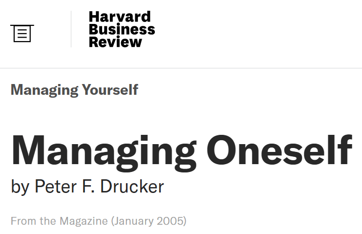제목은 “Managing Oneself (자신을 스스로 경영하라)” 입니다.
