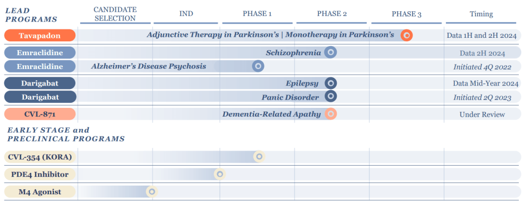 “CVL-231 looks pretty clean on [cardiovascular] tox … and likely attributed to its selectivity for M4 and ability to avoid peripheral activation of M1,” the Jefferies analysts wrote in a note to investors. The study found no link between CVL-231 and extrapyramidal side effects or weight gain and only infrequent cases of gastrointestinal adverse events.