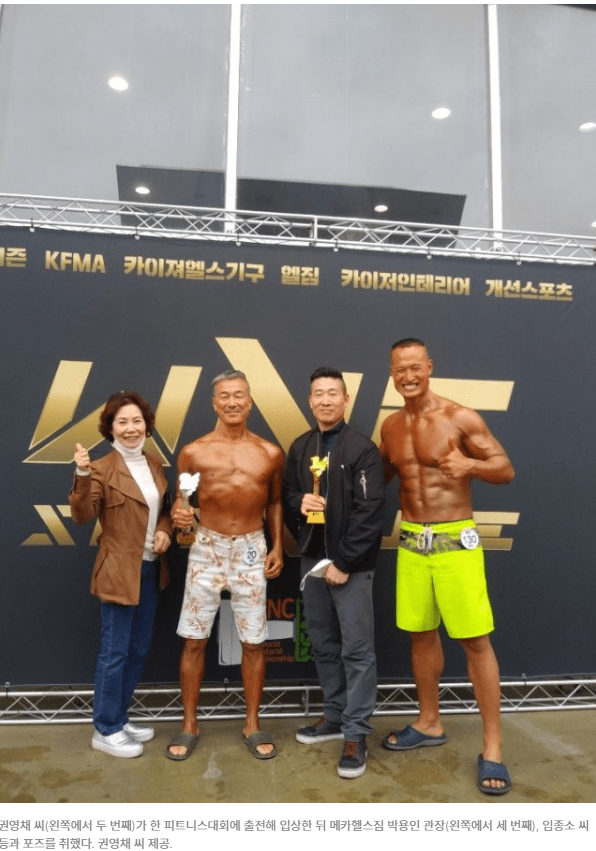 권 씨는 집이 서울 태릉이지만 지하철을 3번 갈아타며 2시간 가는 거리를 주 2회 왕복하며 근육운동을 시작했다. 그는 “솔직히 건강을 위해 집 근처 헬스클럽에서도 운동을 하기도 했지만 임종소 씨를 보며 용인으로 가야겠다는 마음을 먹었다. 결과적으로 잘한 결정”이라고 회상했다. 권 씨는 “아내가 집 근처에도 헬스클럽이 있는데 굳이 용인까지 가야 하느냐고 했다. 솔직히 왕복 4시간이면 시간이 아까울 수도 있다. 하지만 그쪽으로 가야한다는 감이 왔다. 멀어도 제대로 배워야겠다는 생각이었다. 보통 1시간 PT(퍼스널 트레이닝)를 받는데 난 멀리서 왔다고 1시간30분 PT를 받았다. 박 관장님이 잘 지도해 몸살 한번 안 나고 잘 배웠다”고 말했다. 그는 수요일과 토요일 메카헬스집에서 체계적으로 근육을 키우고 평소에는 집에서 홈 트레이닝을 했다. 그는 올 4월 열린 WNC 시그니처 피지크 시니어 부문에서 2위를 했다. 10월 열린 WBC 피트니스 시니어 부문에서도 2위를 차지하는 등 시니어 부문에서 큰 두각을 나타냈다.