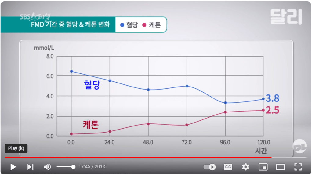 반면 남편 의사분의 경우는 혈당은 낮아지고 지방의 분해물질인 케톤수치는 증가했습니다. 그리고 이 방송에서는 Valter D. Longo 교수와 지속적으로 논의를 하였습니다.