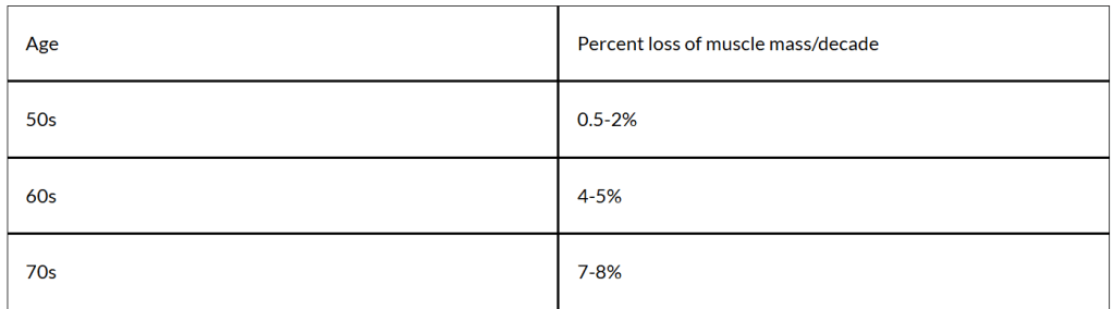연령에 따른 근육 강도 감소는 놀랍게도 이르면 30대부터 시작할 수 있습니다. 여러 연구 결과를 통해서 연령에 따른 근육량 감소율은 10년 주기로 (50대, 60대, 70대로 갈수록) 악화됩니다.
