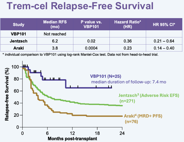 “Preliminary evidence of improved relapse-free survival (median RFS not reached with median follow-up duration of 7.4 months) compared to published groups of AML patients at high risk of relapse post hematopoietic stem cell transplant (HCT)1.