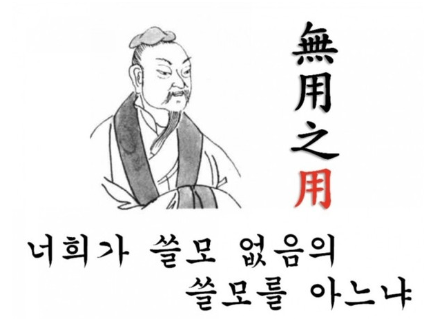 그래서 오늘의 주제는 ‘무용지용 (無用之用)’입니다. 무용지용은 장자가 한 말인데요 ‘언뜻 보기에 쓸모없는 것이 오히려 큰 구실을 한다‘는 뜻입니다.
