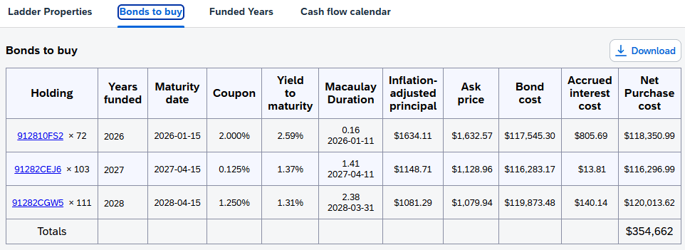 그렇게 하면 $354,662를 넣어서 $361,145를 버는 TIPS ladder가 된다는 것이고요.