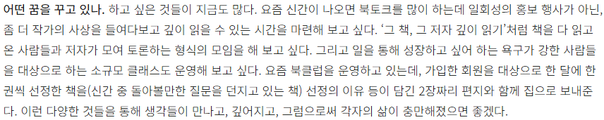 회사를 다니면서 “이 일을 언제까지 잘 할 수 있을까 고민했다.”고 하셨고 “내가 잘 할 수 있는 것으로 다시 이어나가야 했고 그 선택이 최인아책방이었다”고 하셨습니다. 이미 2019년에도 북토크를 하고 계셨군요. 그로부터 또 2년이 지난 후에 한국경제신문과 인터뷰를 하신 것이 있습니다.