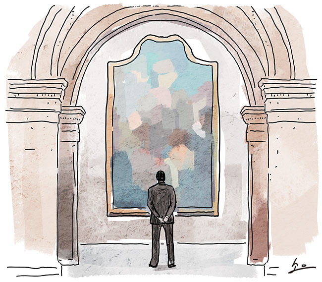 그는 미술관에서 예술 작품들 속에 묻혀 10년의 세월을 보낸 후 어느 날 다시 그곳으로부터 걸어 나온다. 그러곤 책을 쓰고 작가가 된다.