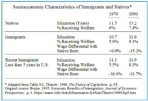 위 표에서 보면 20년간 기존 미국인은 연봉이 6%에서 7.4%로 상승을 하는 반면 이민자들은 0.9%에서 -15.2%로 크게 뒤쳐졌습니다. 특히 5년 이내의 이민자들은 -16.6%에서 -31.7%로 더욱 크게 연봉이 줄어들었죠. 그러니까 아메리칸 드림은 1세대에게 불가능하다는 것입니다. 이민자들이 자녀 교육에 올인하는 이유이기도 하죠. 저도 아마 이 때 만약 자녀가 생긴다면 교육은 미국에서 시켜야겠다고 생각했던 것일지도 모르겠습니다. 오래 되어 기억이 가물가물하군요.