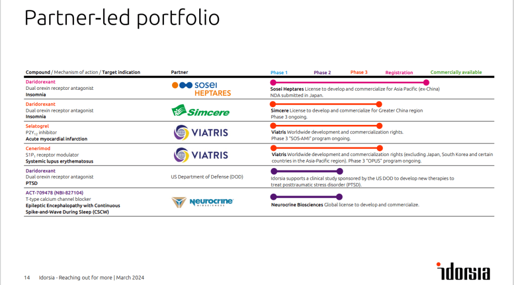 The company ended March with 212 million Swiss francs ($245 million) in cash and equivalents. Since then, Idorsia has secured bridge financing of 75 million Swiss francs ($86 million) as well as sold its Asia-Pacific rights outside of China to Sosei Heptares.