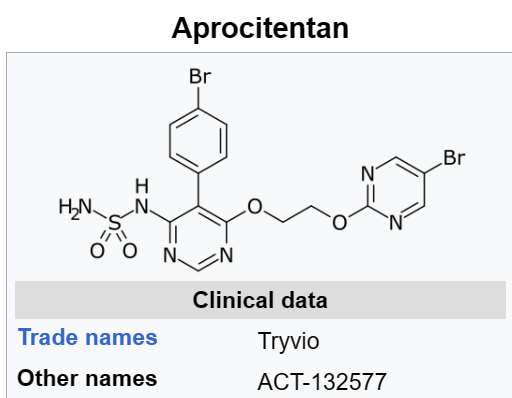 올해 3월에 마침내 Aprocitentan (Tryvio, ACT-132577)가 FDA 승인을 받았습니다.