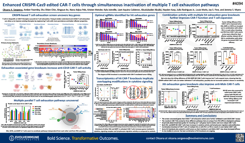 CRISPR-Cas9으로 multiple T cell exhaustion pathways를 동시에 Inactivation시키는 방법에 대해 같은 AACR에서 보고했습니다.