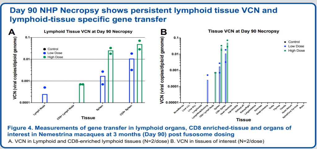 90일 이후에 NHP Necropsy를 했을 때 Gene Transfer가 Lymphoid-tissue specific하게 이루어졌슴을 알 수 있습니다.